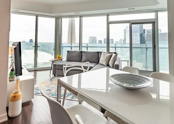 High Rise Condo With Stunning Lake And Cn Tower View se trouve à moins de 20 minutes à pied du Toronto Eaton Centre et juste à côté de la station de métro Union. Le Marché St. Lawrence est à moins de 16 minutes de marche du domicile de 70 m^2. Harbourfront Centre se trouvent également à quelques mètres d'High Rise Condo With Stunning Lake And Cn Tower View.
